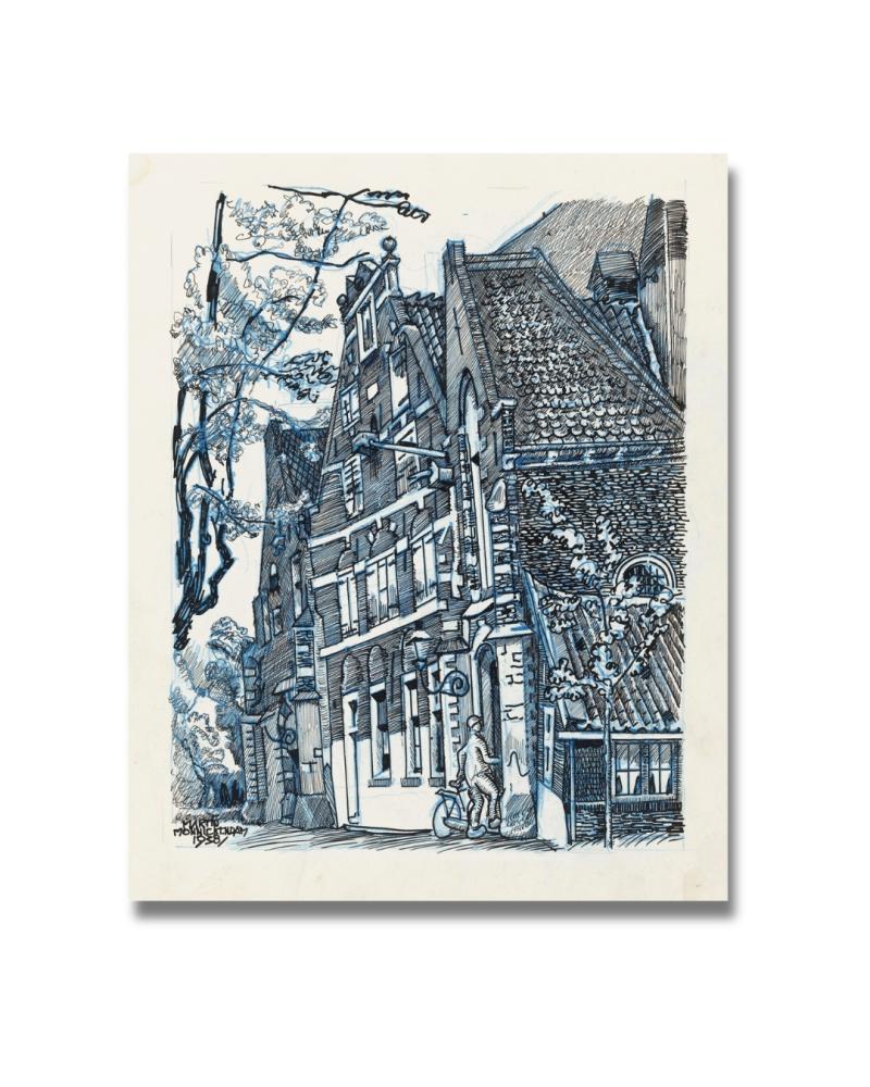 لوحة “المدخل الشرقي لكنيسة القديس نيكولا في موننيكيدام” (1938) للفنان الهولندي مارتن موننيكيدام (1874-1943)، تصور المشهد المعماري لكنيسة القديس نيكولا في مدينة موننيكيدام الهولندية، مع التركيز على المدخل الشرقي.